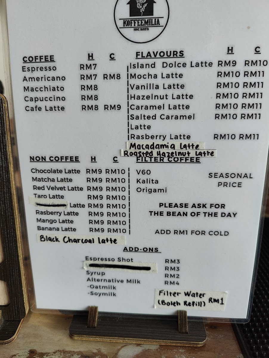 koffeemilia langkawi Menu